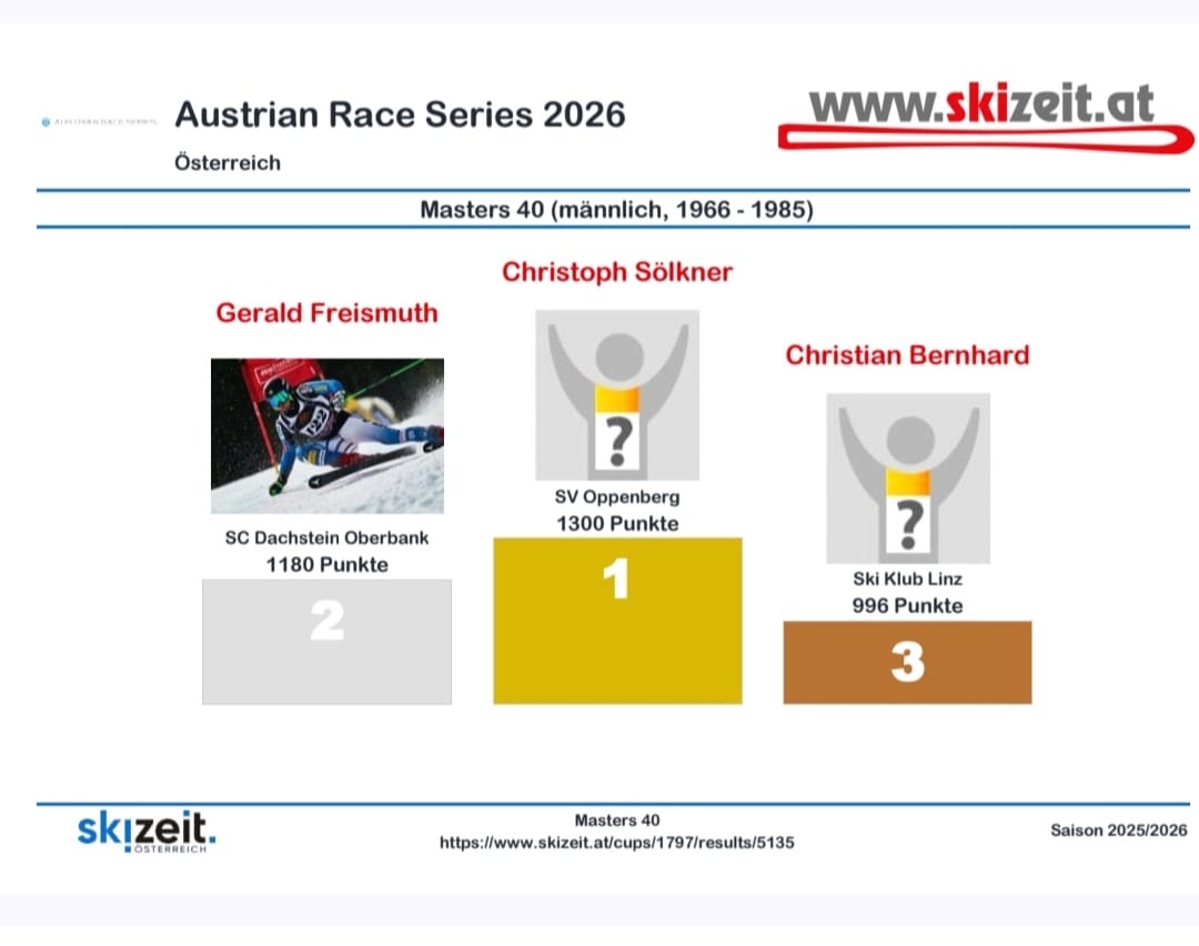 Bernhard Christian, Mitglied des Skiklub Linz, vertrat unseren Klub in der Altersklasse 40+ bei den Austrian Race Series. Er erreichte den 4. Platz im Super-G und den 3. Platz im Riesentorlauf.